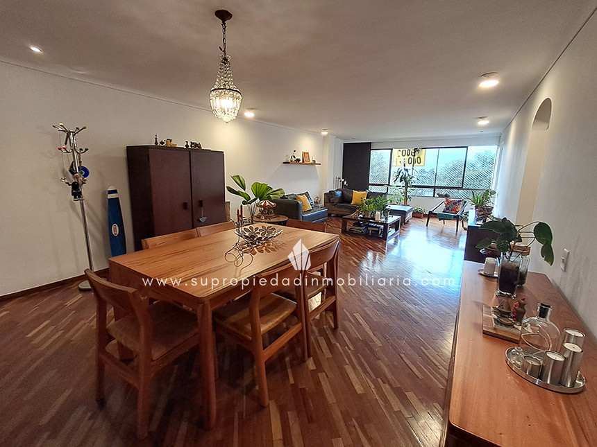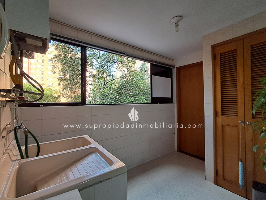 Apartamento en venta en El Tesoro, El Poblado. Descubre la comodidad y el estilo de este espectacular apartamento de 148.40 m², ideal para disfrutar en familia o como inversión. Cuenta con 3 alcobas, 4 baños(3 completos incluyendo el de servicio y uno social sin ducha), estudio, sala comedor con excelente iluminación y acabados en madera natural que aportan calidez y elegancia. Su cocina integral está equipada con red de gas natural y calentador a gas, además de un cuarto de servicio con baño privado. Incluye 2 parqueaderos cubiertos sencillos, zonas comunes con salón social, áreas verdes, parque infantil, zona BBQ, shut de basuras y vigilancia 24 horas. Su ubicación ofrece fácil acceso por la transversal inferior y superior, cerca de los mejores malls del sector. Se entrega sin amoblar. ¡Haz de este apartamento tu nuevo hogar o una excelente inversión en El Poblado! Contáctanos.