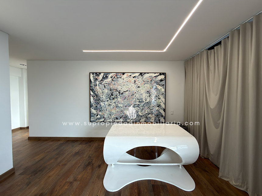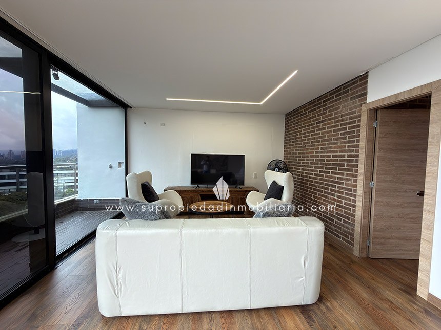 Apartamento en arriendo, Loma del Escobero, Envigado. Espectacular dúplex de 166 m² en exclusiva unidad cerrada con pocas torres para máxima privacidad y tranquilidad. Primer nivel: cocina abierta con barra americana, sala-comedor luminosa, zona de ropas cerrada, 2 habitaciones con closet, 2 baños (uno en suite) y depósito. Segundo nivel: impresionante habitación principal con amplio vestier, baño privado y balcón con increíble vista panorámica a la ciudad. Acabados premium: piso en porcelanato y madera laminada, calentador e instalación de gas natural. Incluye 2 garajes cubiertos independientes + depósito. El conjunto ofrece piscina, jacuzzi, sauna, gimnasio, coworking, oratorio, salón comunal, zonas verdes pet-friendly, vigilancia 24/7, CCTV y portería. ¡Se puede entregar amoblado o sin amoblar según tu necesidad! (Precio publicado incluye mobiliario) ¡Vive el lujo y la exclusividad que mereces! Agenda tu visita hoy. SE ENTREGA AMOBLADO O SIN AMOBLAR SEGÚN ACUERDO