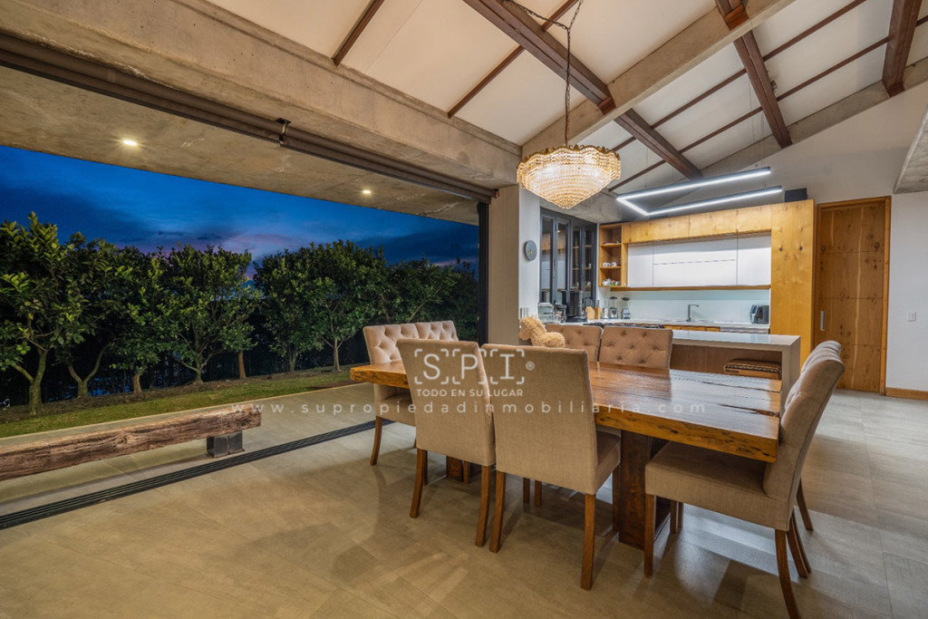 Casa en Venta, Envigado, El Escobero. Vive una experiencia exclusiva en esta imponente casa amoblada, diseñada para quienes buscan confort, elegancia y una conexión perfecta con la naturaleza. Con 408 m² construidos sobre un lote de 2.000 m², ofrece amplios espacios llenos de luz y detalles de lujo. Su cocina abierta en roble cuenta con nevera, torre de hornos, lavaplatos y nevera de vinos General Electric línea Monogram, además de una práctica despensa independiente. El área social se integra con un deck auxiliar en madera de 36 m², equipado con hidrospa para 8 personas, mobiliario y vista panorámica a la ciudad. La casa dispone de 4 habitaciones, 5 baños, estudio, terraza, balcón y zona de ropas. Incluye centro de entretenimiento con sonido Control4, video beam y pantalla motorizada de doble visión. Cuenta con parqueadero para 6 vehículos y vigilancia 24 horas. Disfruta lujo, privacidad y comodidad en un solo lugar. Contáctanos. 0.1