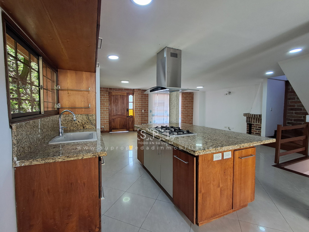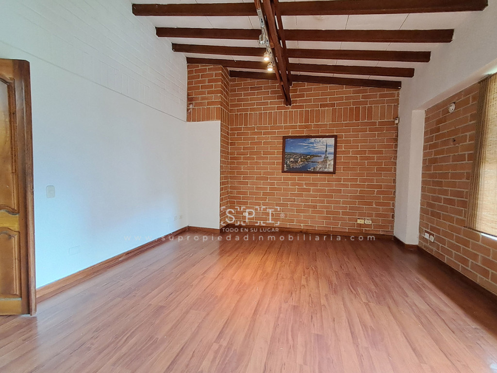 Casa en arriendo en Aves María, Sabaneta. Amplia casa de 217 m² con excelente distribución y acabados premium en zona residencial consolidada. Cuenta con 3 alcobas (principal con Vestier y baño privado, las demás con clóset y baño privado), cuarto de servicio con baño propio, estudio independiente, sala-comedor integrada con chimenea, cocina integral con red de gas natural y calentador a gas, zona de ropas, balcón, terraza y patio posterior. Piso en porcelanato de alta calidad, puerta principal con chapa de seguridad. Incluye 2 parqueaderos cubiertos. El conjunto ofrece vigilancia 24 horas, salón social, zonas verdes, citófono, parque infantil, CCTV, zona BBQ, parqueaderos visitantes, piscina, sauna, turco y gimnasio. Ubicación privilegiada frente al CC Aves Marías, cerca de Éxito y Estación Metro La Estrella, con acceso rápido por Calle 43A y Calle 75 Sur. SE ENTREGA SIN AMOBLAR Contáctanos ya para agendar tu visita. 0.1