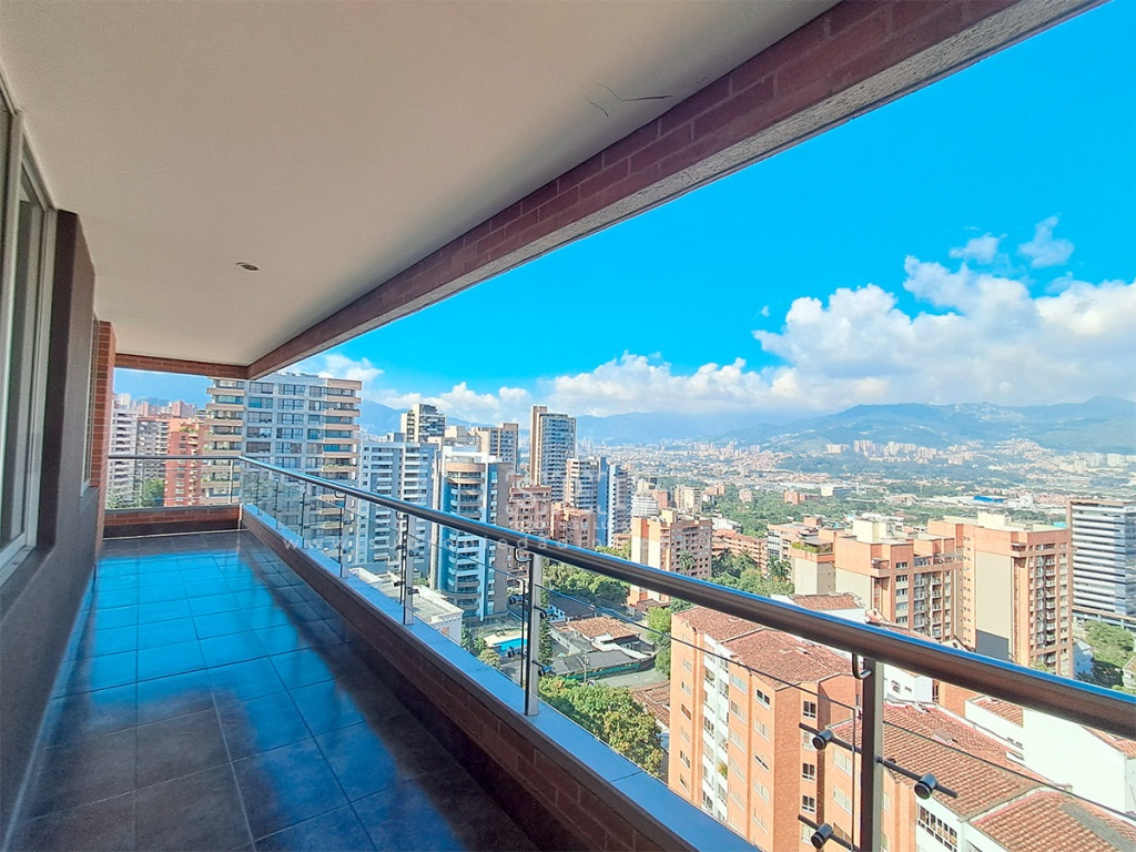 Apartamento en arriendo en Castropol, El Poblado. ¡Espectacular Apartamento de 151 m² con hermosa vista panorámica a la ciudad y balcón que rodea todo el apartamento! Cuenta con 3 alcobas (principal con baño privado y vestier, auxiliar con baño y la tercera con closet), cuarto de servicio con baño privado, total 4 baños, estudio independiente, cocina integral equipada con gas natural y calentador a gas, sala comedor amplia, zona de ropas y pisos en cerámica. Incluye 2 parqueaderos lineales cubiertos + 2 útiles. Zonas comunes completas: piscina, sauna, gimnasio, salón social, zonas verdes, parque infantil, portería y vigilancia 24 horas, ascensor, shut de basuras y parqueaderos para visitantes. Ubicación premium cerca de Chatham de Castropol, Carulla Las Palmas, Centro de Negocios Prisma y Parque de El Poblado, con acceso rápido por Av. Las Palmas, Av. El Poblado y Calle 10. SE ENTREGA SIN AMOBLAR ¡Vive con vista increíble y máximo confort ! Contáctanos hoy y agenda tu visita.